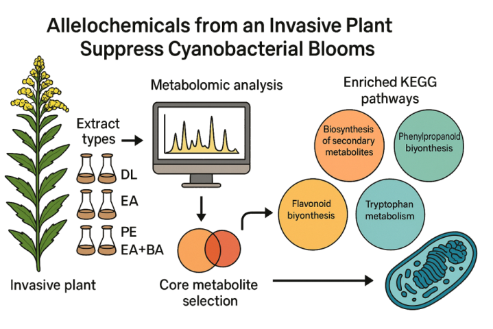 (通讯员 侯文婷)近日,bevictor伟德官网生物多样性与可持续生态团队在入侵植物加拿大一枝黄花(Solidago canadensis)的研究中取得系列重要进展,系统揭示了其对农作物系统的化感抑制机制,并创新提出其作为抑藻资源的利用路径,为入侵植物的“绿色管控”提供了新思路。