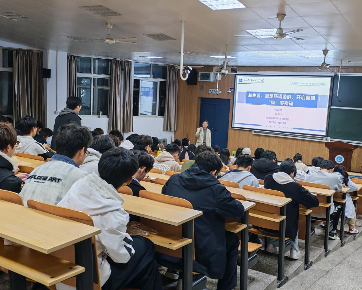 (通讯员 马凤莲)为帮助2025级新生拓展专业视野、把握学科前沿,bevictor伟德官网“博士讲坛”第十一期于11月12日在6号楼C116教室顺利举行。马凤莲博士为生物工程专业全体新生作了题为《益生菌:重塑肠道菌群,开启健康“肠”寿密码》的专题学术报告。