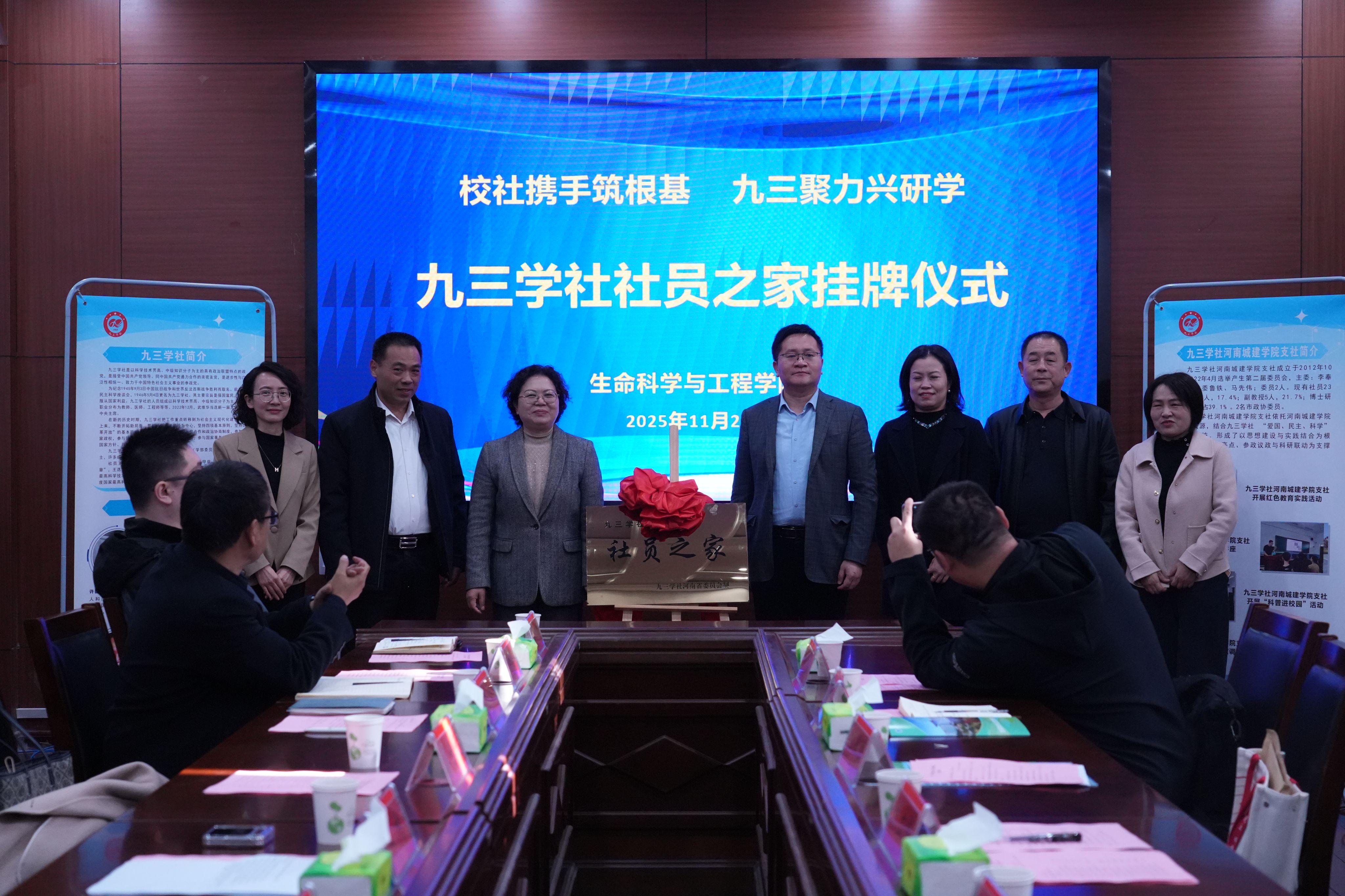 王靖向“社员之家”挂牌表示祝贺,向长期关心支持学校发展的九三学社市委会和社员朋友致以感谢。她希望借助九三学社的智力优势,围绕学校团队建设、科研创新、人才培养等关键领域,汇聚更多智慧力量,为学校高质量发展把脉问诊、出谋划策;依托学校的学科特色与平台资源,为社员开展学术研究、成果转化、社会服务提供更广阔的舞台,推动形成“教学相长、研用贯通”的良好局面;以研学合作为抓手,共同打造校社协同育人品牌,将九三学社的优良传统与科学精神融入人才培养全过程,引导广大师生树立家国情怀、锤炼科学素养,为国家和地方培养更多高素质人才。